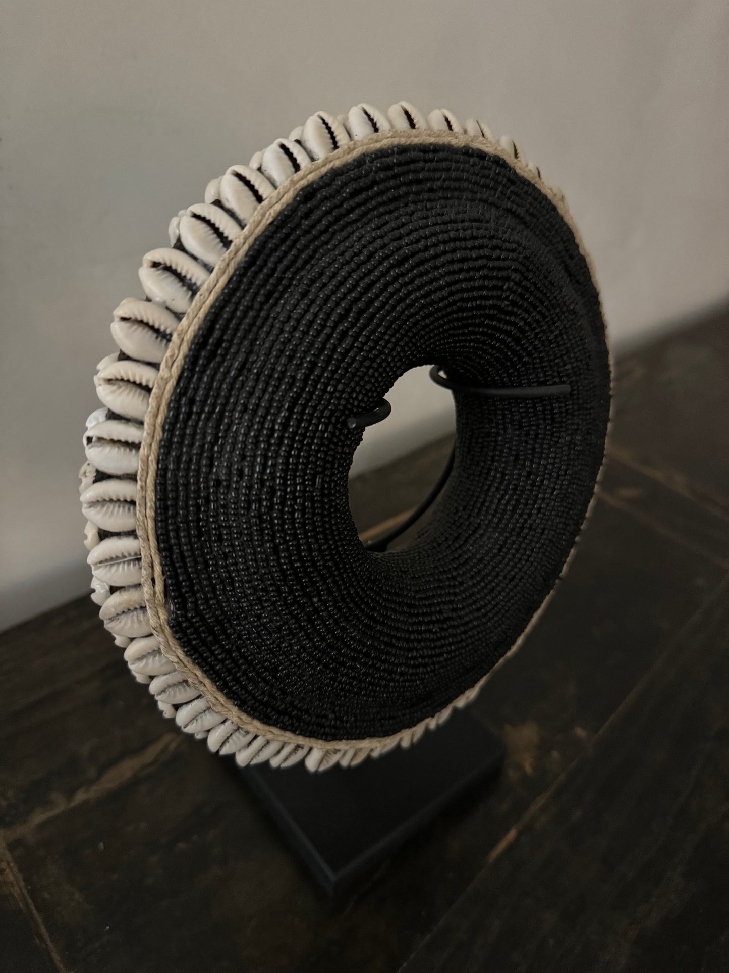 BRACELET PERLES DE VERRE NOIRES ET CAURIES - CAMEROUN