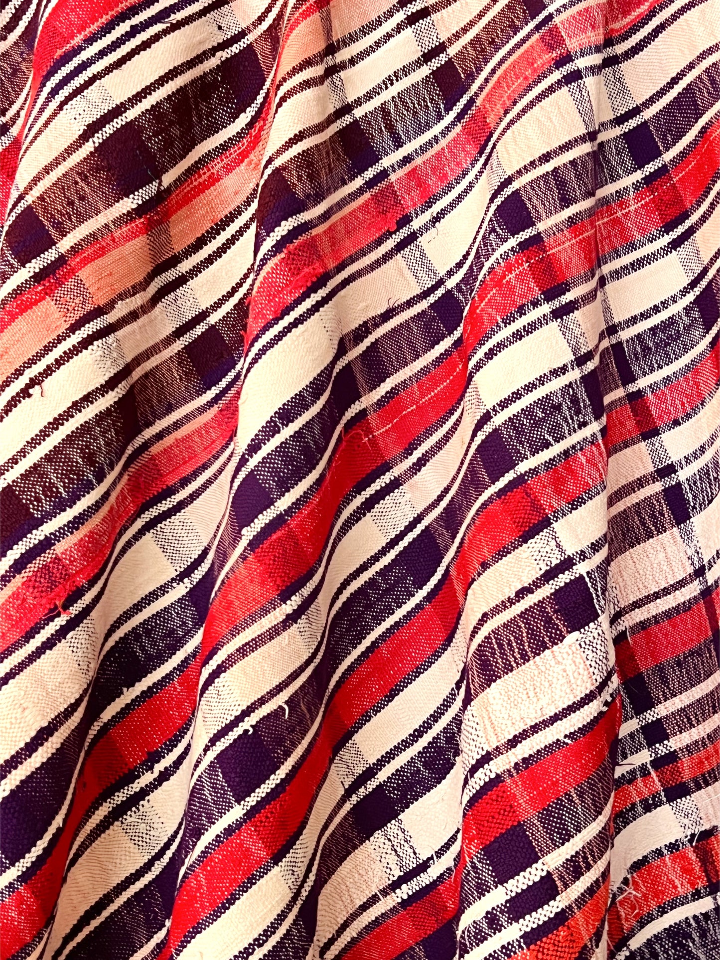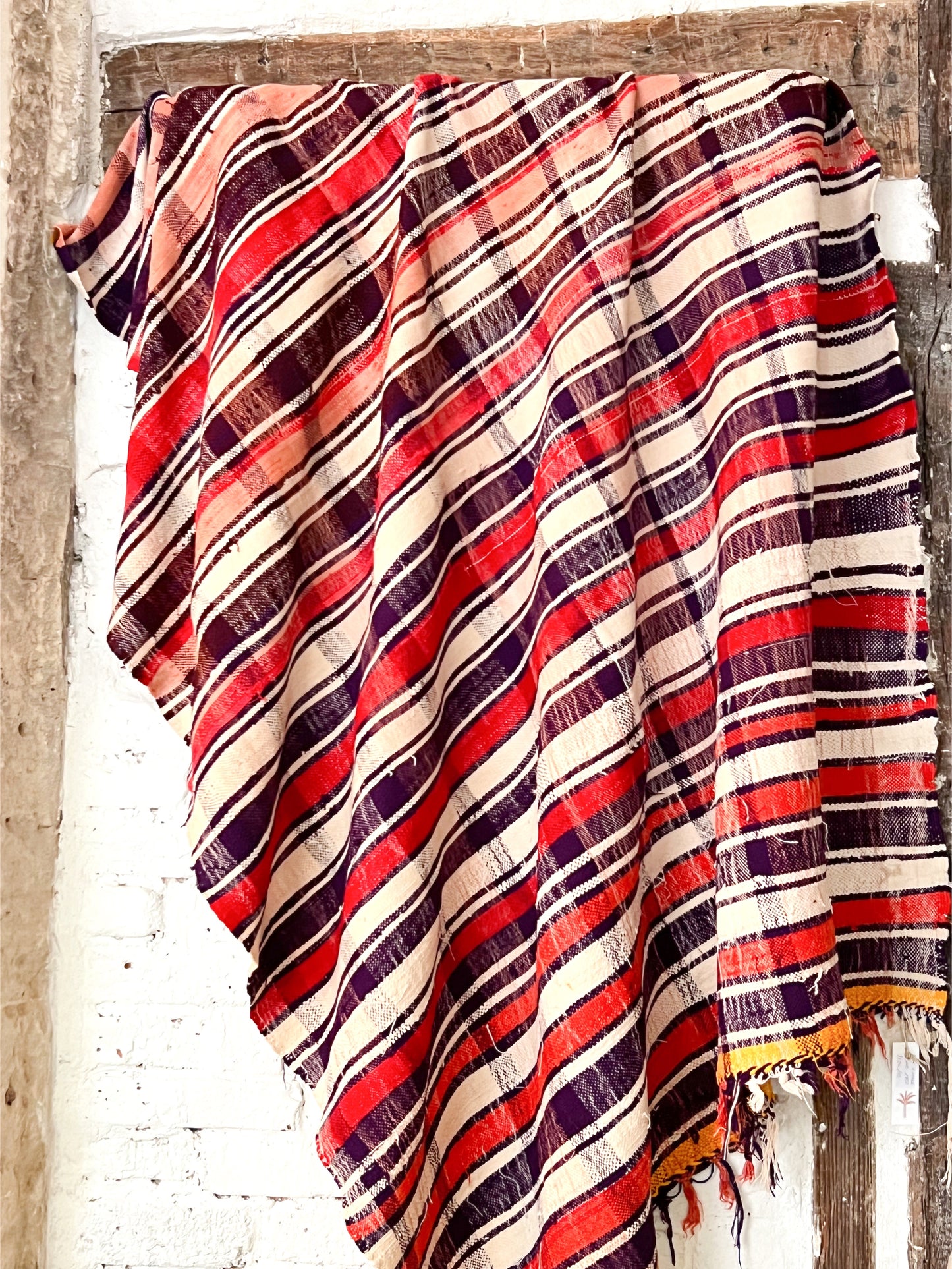 Our vintage haiks are Moroccan Berber pieces with checks or lines, in wool or cotton. All entirely handmade. Families use them for everything in their home and so do we.