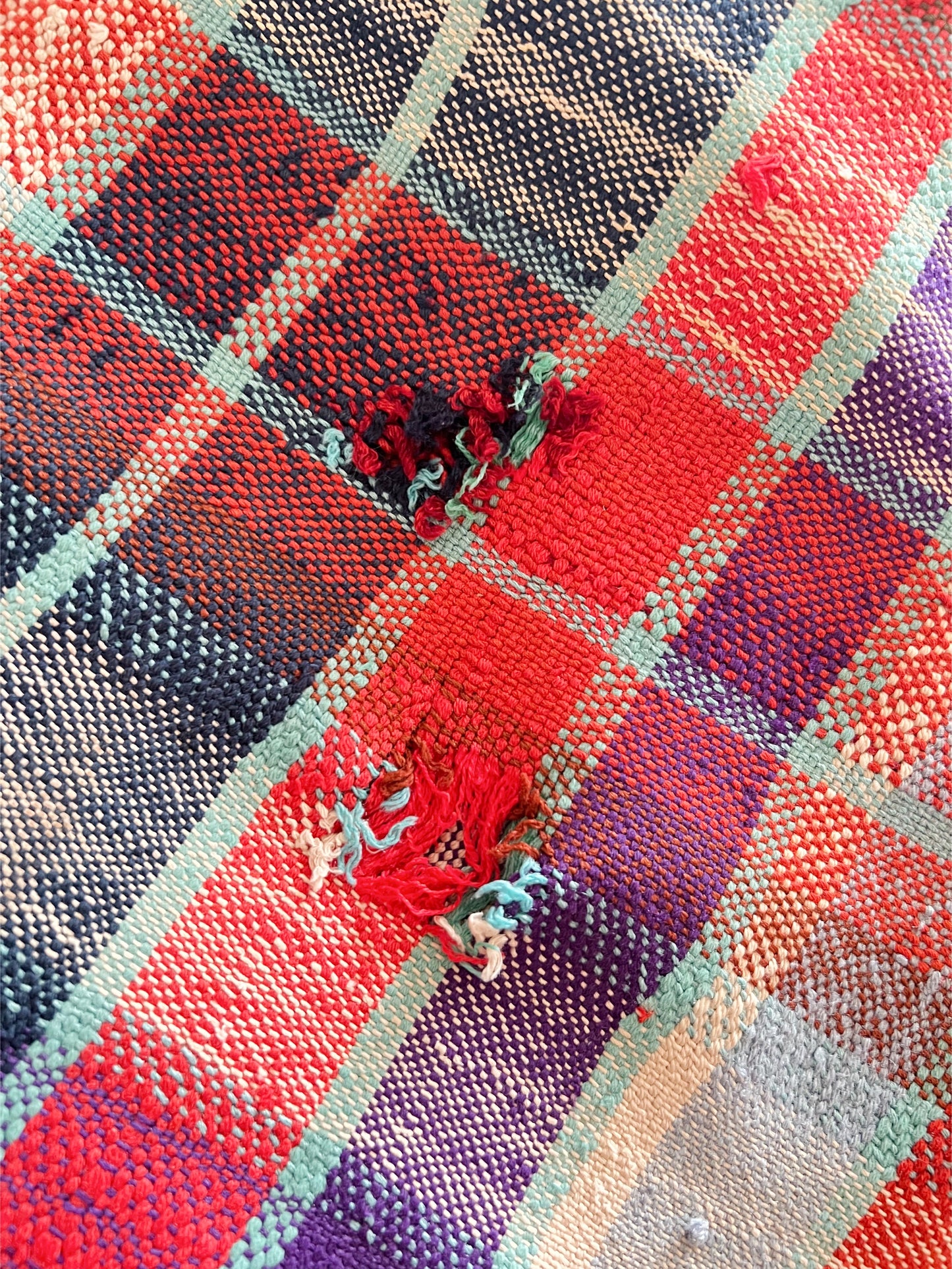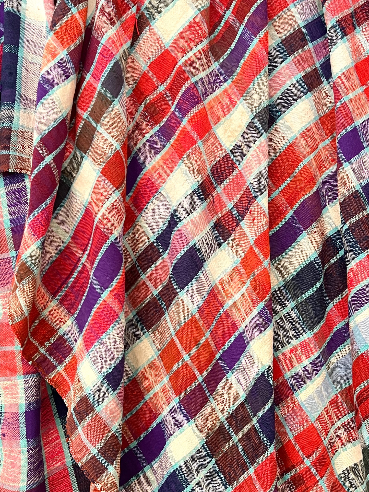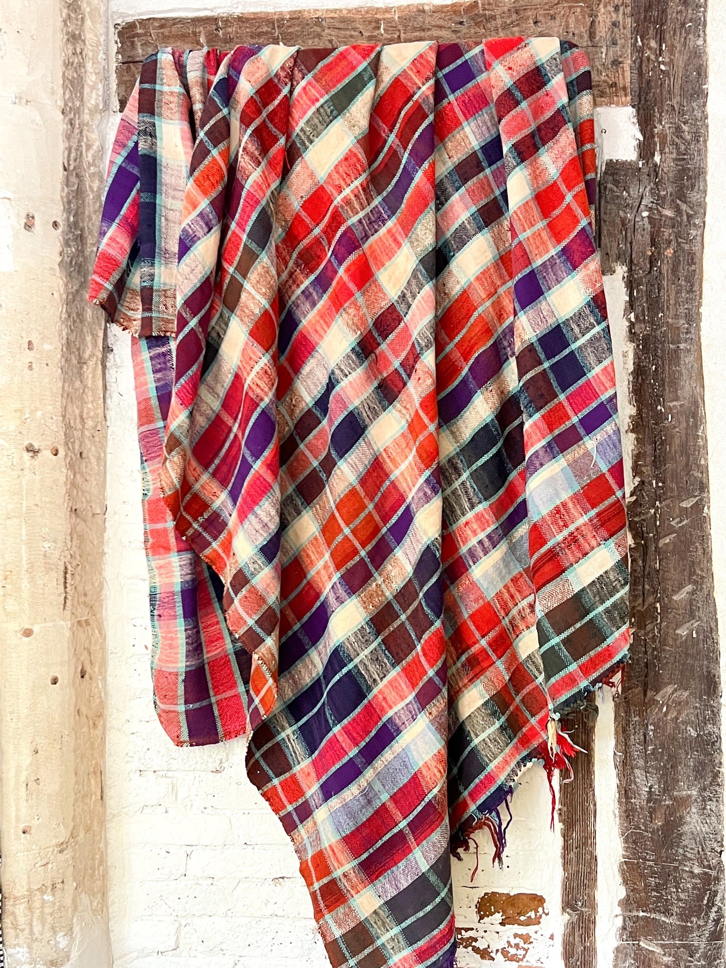 Our vintage haiks are Moroccan Berber pieces with checks or lines, in wool or cotton. All entirely handmade. Families use them for everything in their home and so do we.