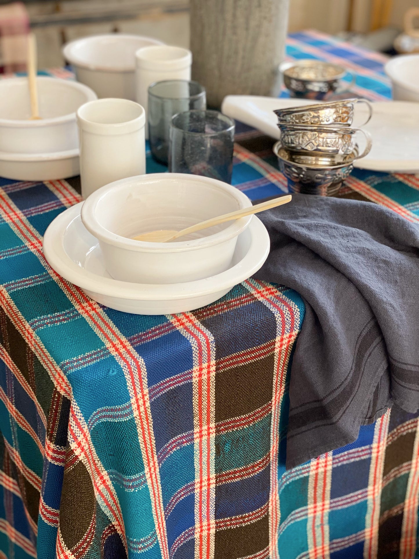 Our vintage haiks are Moroccan Berber pieces with checks or lines, in wool or cotton. All entirely handmade. Families use them for everything in their home and so do we.