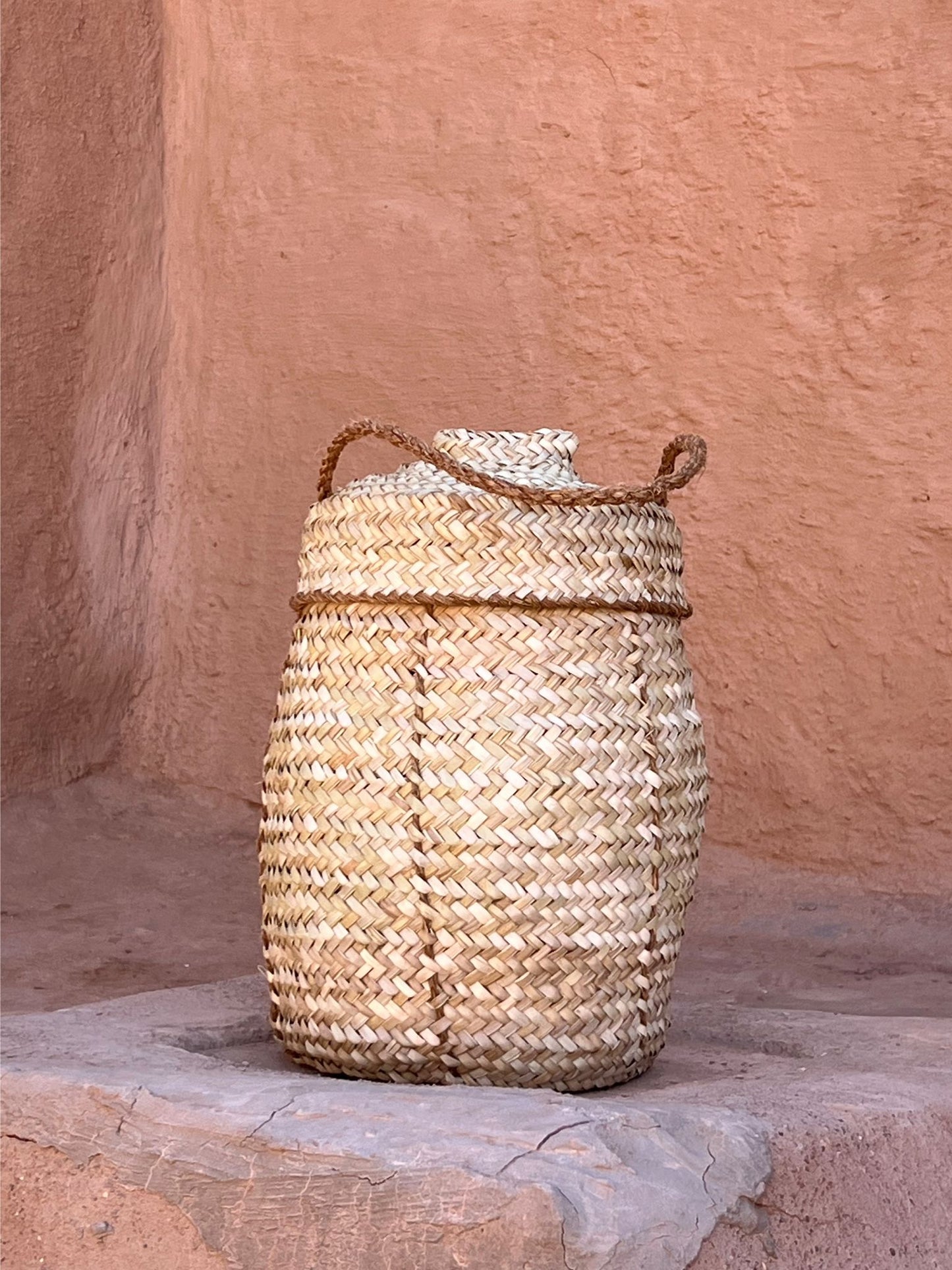 Basket made of palm leaves and fibers handmade in the Algerian Sahara.
