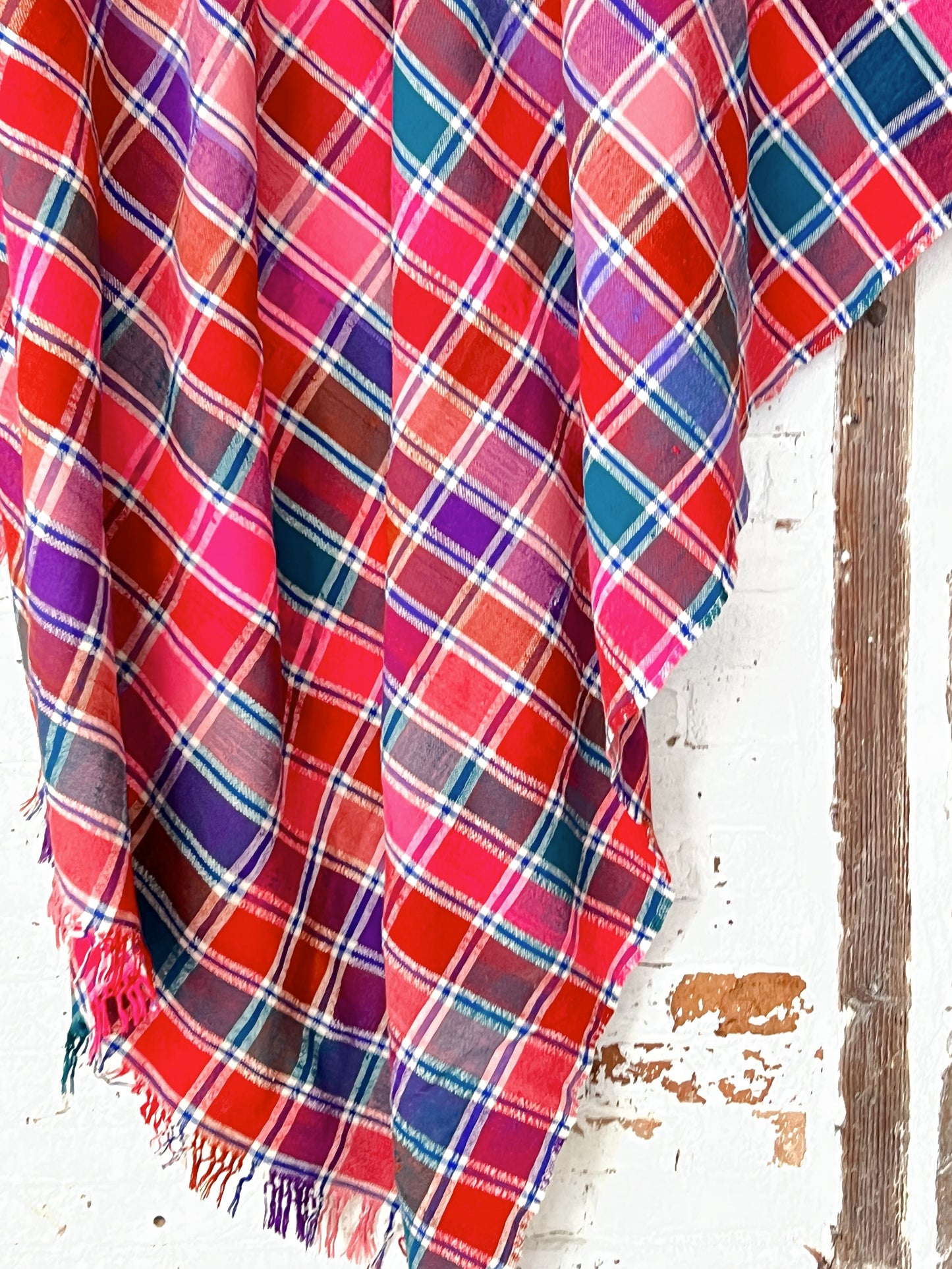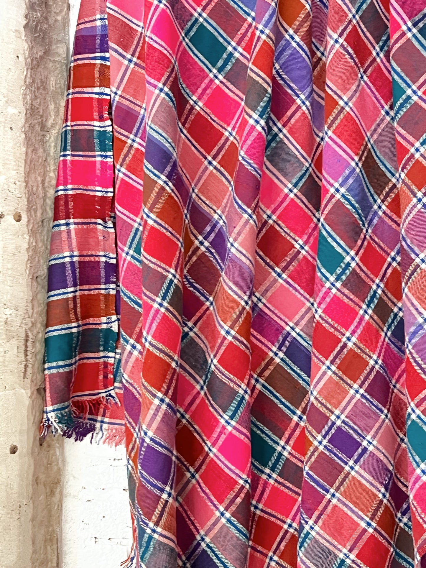 Our vintage haiks are Moroccan Berber pieces with checks or lines, in wool or cotton. All entirely handmade. Families use them for everything in their home and so do we.