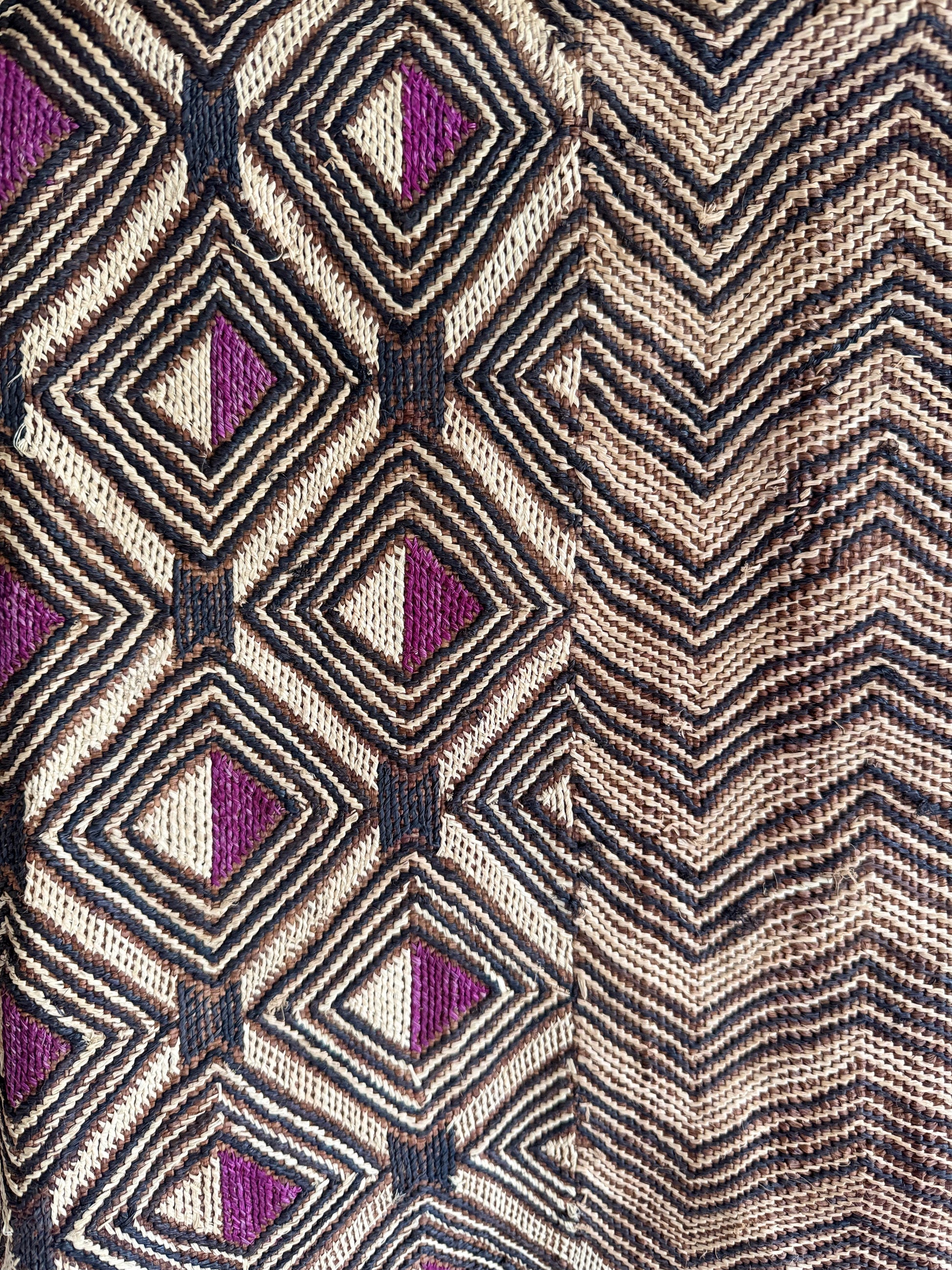 Les nombreux modifs de broderie Shoowa, documentés depuis que des tissus ont été collectionés sur les rives de la Sankuru à la fin du XIXè siècle, confirment la remarquable capacité de ces artistes à improviser à l'infini sur un même motif géographique ou un même thème.