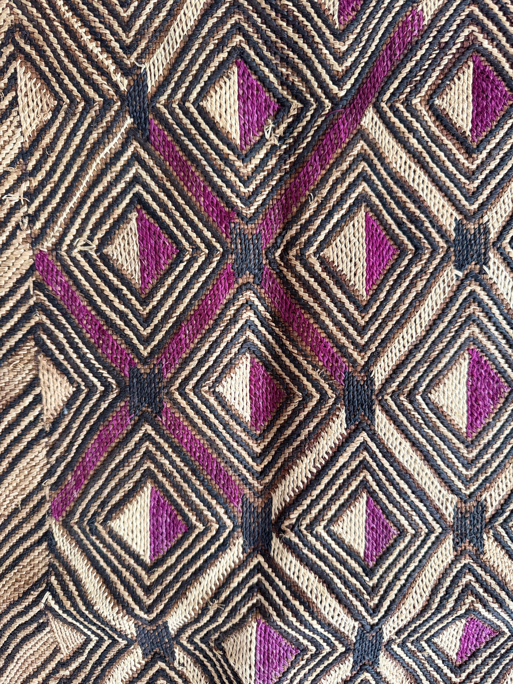 Partant souvent d'une rangée de triangles ou de lignes en zigzag, elles adaptent leur points et leurs motifs à la toile de raphia et créent une finition qui tient compte de l'espace dont elles disposent.
